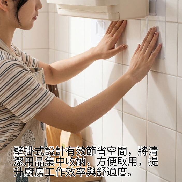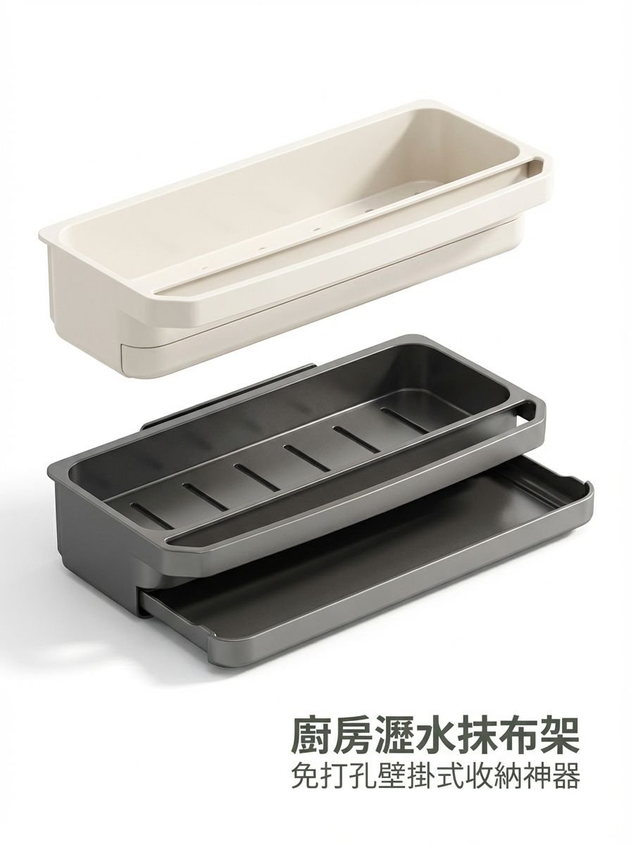● 多功能收納架,能同時擺放抹布、海綿等清潔用品,分類收納讓廚房空間更有條理。