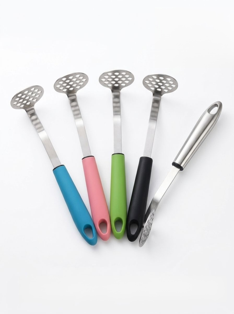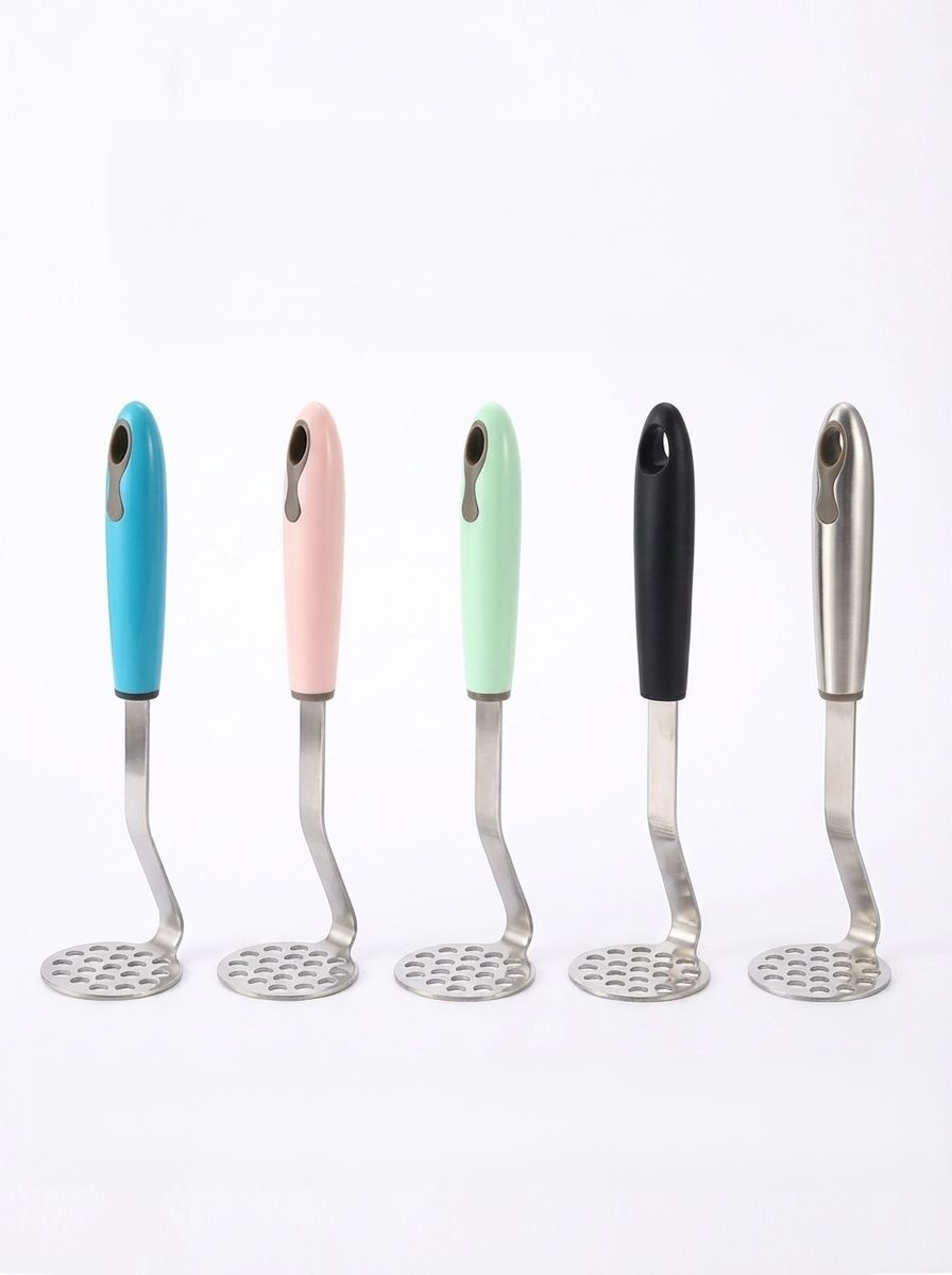 彩色手柄不鏽鋼馬鈴薯泥攪拌器廚房多用途手動工具